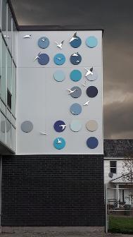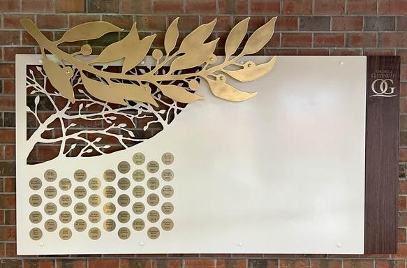 Ombres. Oeuvre permanente, installée en juin 2016 au Centre communautaire de Manoir-des-Trembles, Gatineau, Qc.